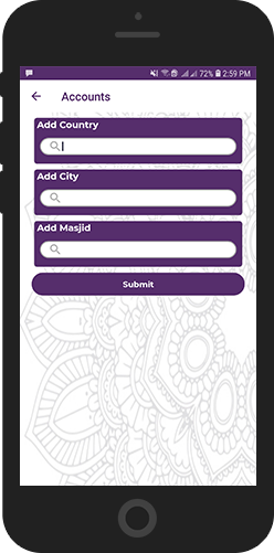 Download the App and Add the Country, City & Masjid Name made available by the admin.